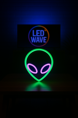 Add a colourful glow to your space with our Alien (Green + Purple) Neon Sign — Often placed in a creative gaming room, decorations for a party, or even the rooms of Sci-fi lovers!